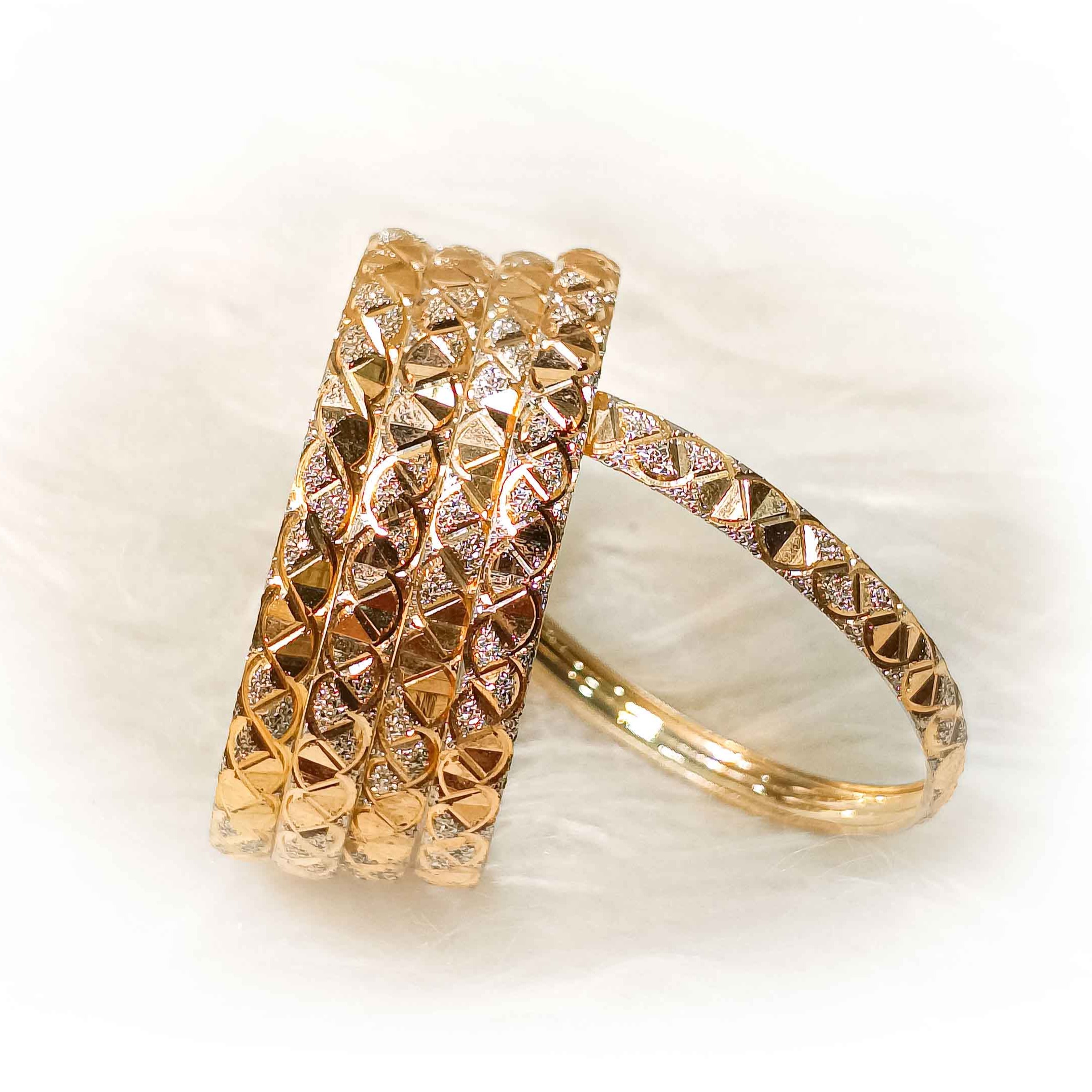 رنگ النگوهای نقره با آبکاری طلا(رنگ طلایی و دو رنگ) بعد از مدتی در صورت عدم نگهداری صحیح ممکن است کدر یا بی حال بشود که البته با هزینه ای قابلیت آبکاری مجدد دارند . (النگوهای تمام سفید ضمانت رنگ دائم دارند)